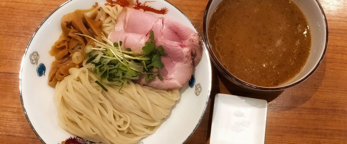 鶏白湯をベースにしつつも、魚介の風味が力強く主張するつけ汁が絶品です。特筆すべきは、提供時に添えられる「お塩」。まずは麺に少量の塩をつけて食べることで、小麦本来の香りと甘みが引き立ちます。